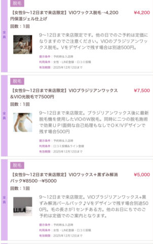 しかも今週ならお得にVIO脱毛や脚の脱毛!